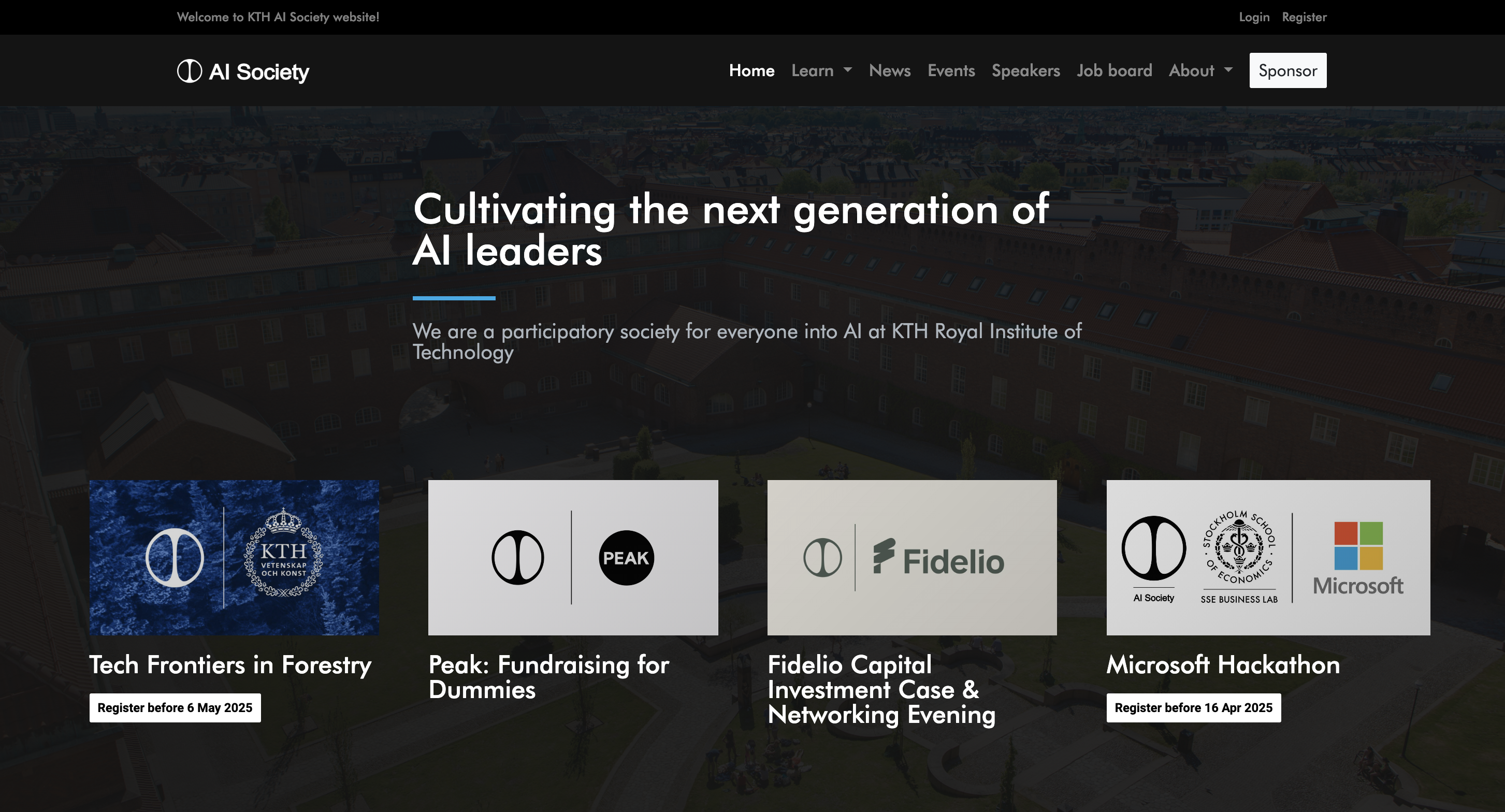 KTH AI society is a student organization, I'm apart of the IT-team as a frontend developer rebuilding the website.